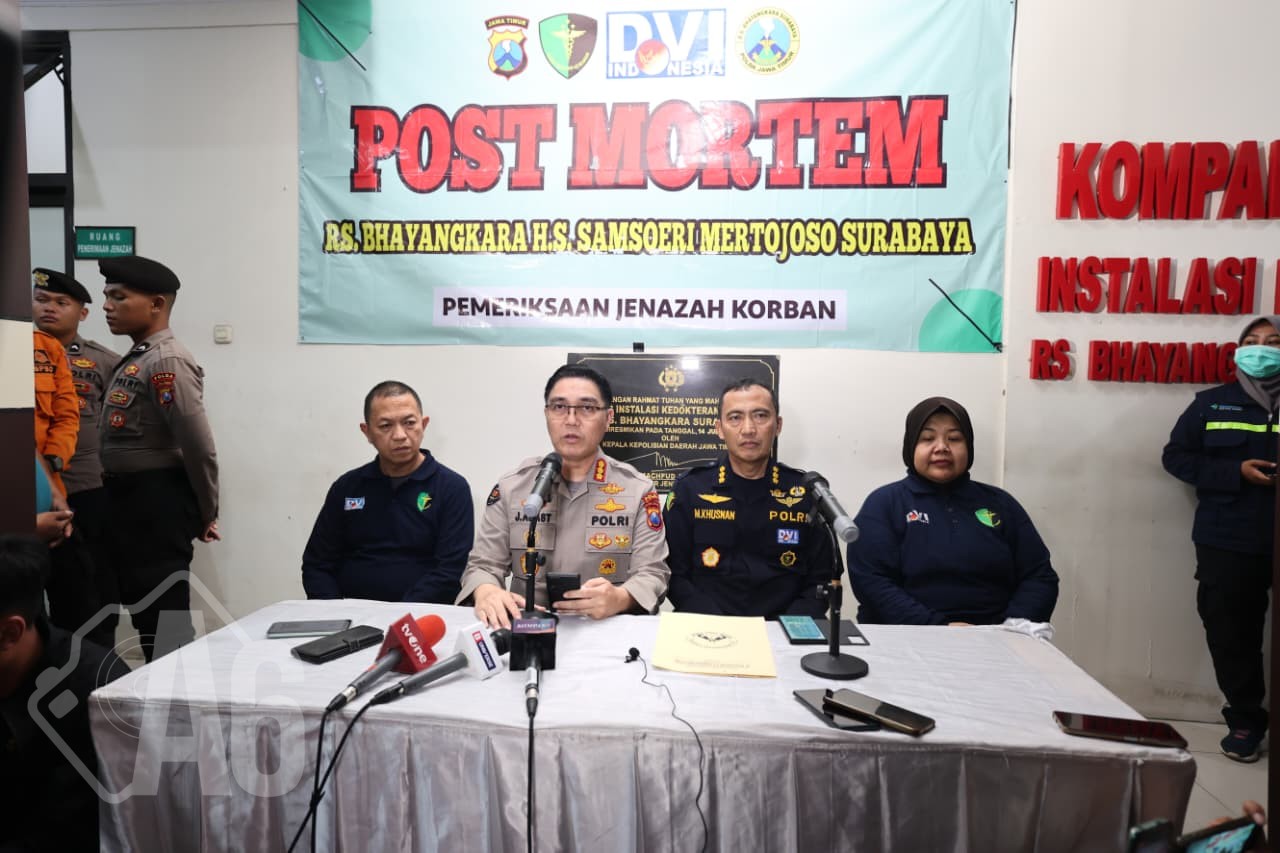 Dikesempatan yang sama, Kabiddokkes Polda Jatim Kombes Pol. Dr. dr. M. Khusnan Marzuki menjabarkan hasil identifikasi terbaru.
