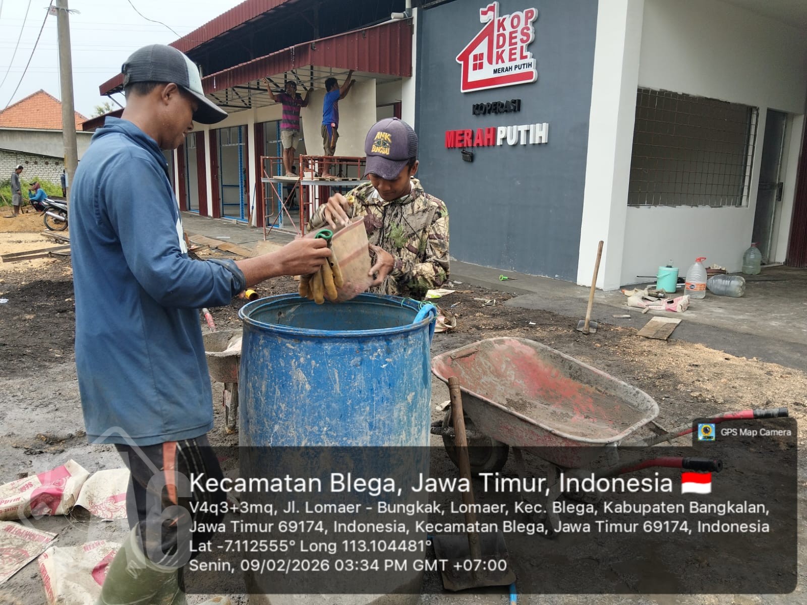 LiputanA6, Bangkalan – Pembangunan Koperasi Desa/Kelurahan Merah Putih (KDKMP) di Desa Lomaer, Kecamatan Blega, terus menunjukkan progres signifikan. Pada Senin (9/2/26), kegiatan pembangunan difokuskan pada beberapa pekerjaan lanjutan guna mempercepat penyelesaian sarana koperasi yang nantinya diharapkan mampu menunjang peningkatan perekonomian masyarakat desa.
