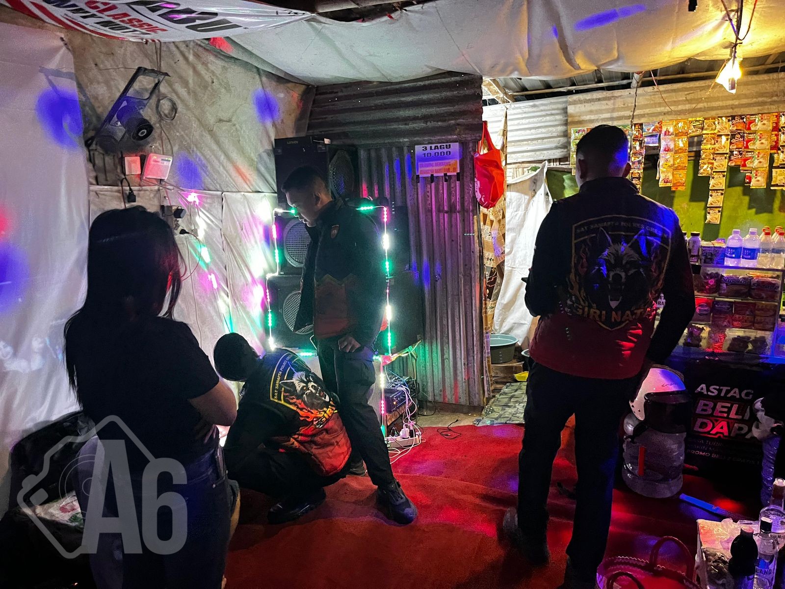 Selanjutnya, petugas bergeser ke Desa Bringkang. Di lokasi ini, petugas mendapati sebuah warung karaoke yang masih beroperasi dengan alunan musik keras.