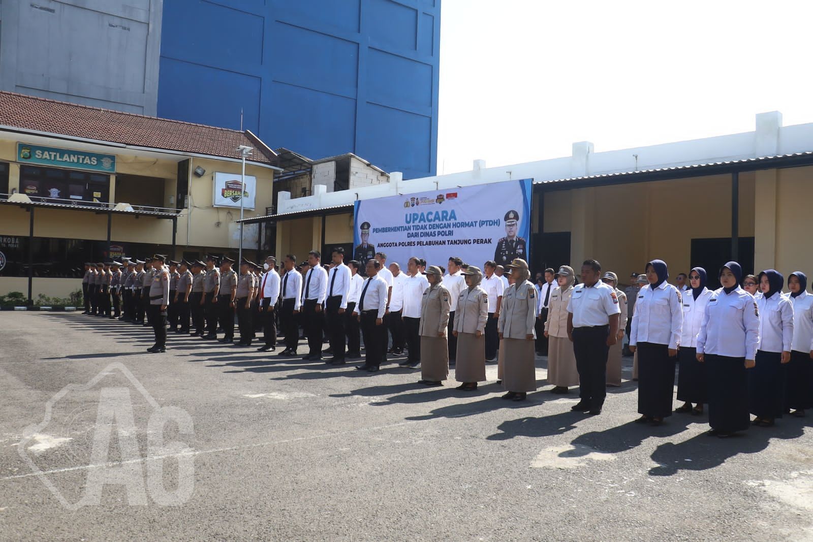 Kapolres Pelabuhan Tanjung Perak, AKBP Wahyu Hidayat menegaskan komitmen kuat institusinya dalam menjaga integritas dan kepercayaan masyarakat. Hal tersebut disampaikan saat memimpin upacara pemberhentian tidak dengan hormat (PTDH) in absensia terhadap satu personel, di Lapangan Mako Polres Pelabuhan Tanjung Perak, Senin (13/04/2026).