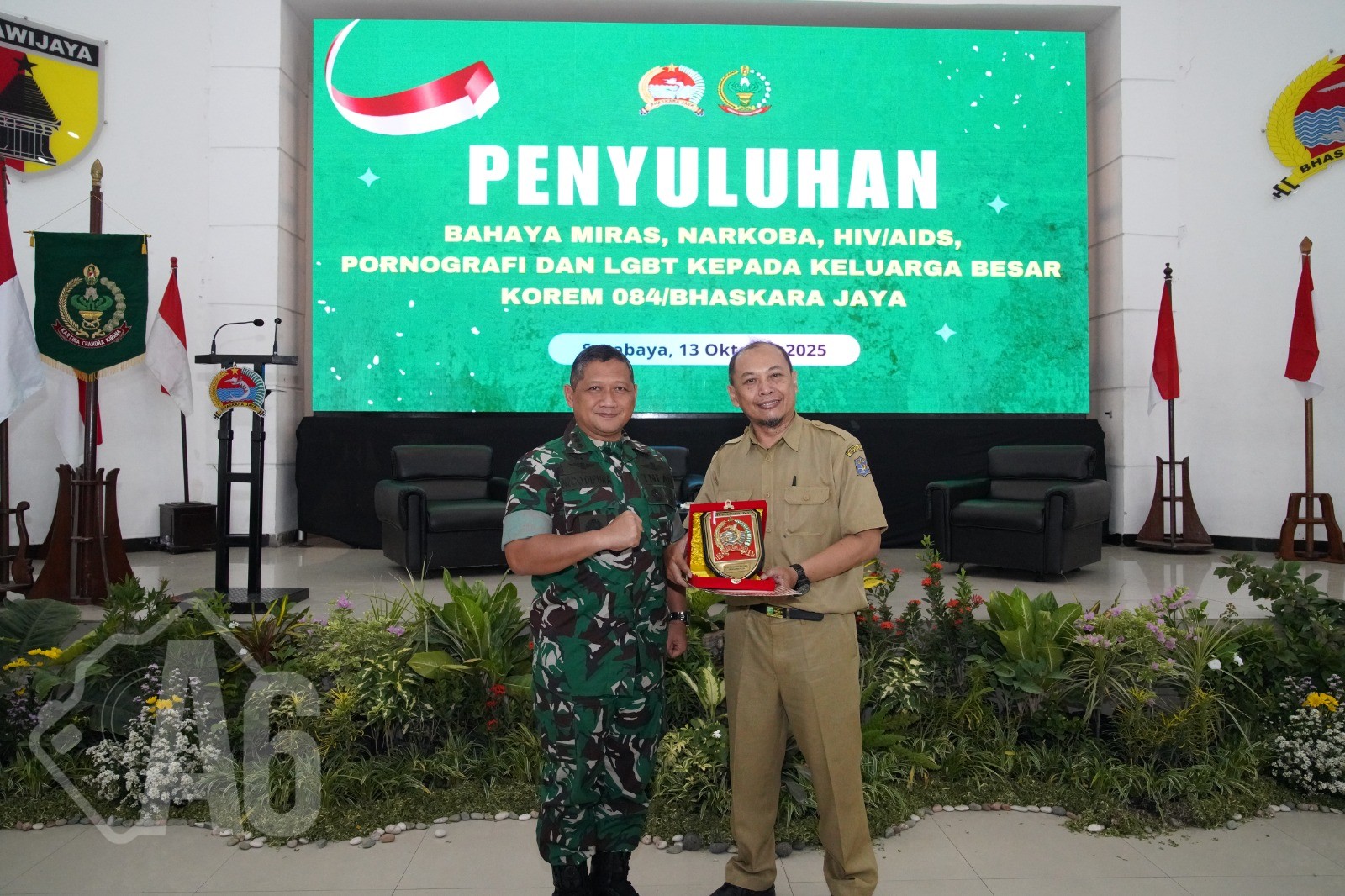 LiputanA6, Surabaya – Korem 084/Bhaskara Jaya menggelar penyuluhan tentang bahaya minuman keras (miras), narkoba, HIV/AIDS, dan perilaku menyimpang LGBT di Aula Makorem 084/BJ, Surabaya, Senin (13/10/2025). Kegiatan ini bertujuan meningkatkan kesadaran dan pemahaman anggota TNI, PNS, Persit, serta generasi muda tentang dampak negatif penyalahgunaan zat berbahaya dan perilaku menyimpang yang merusak moral bangsa.