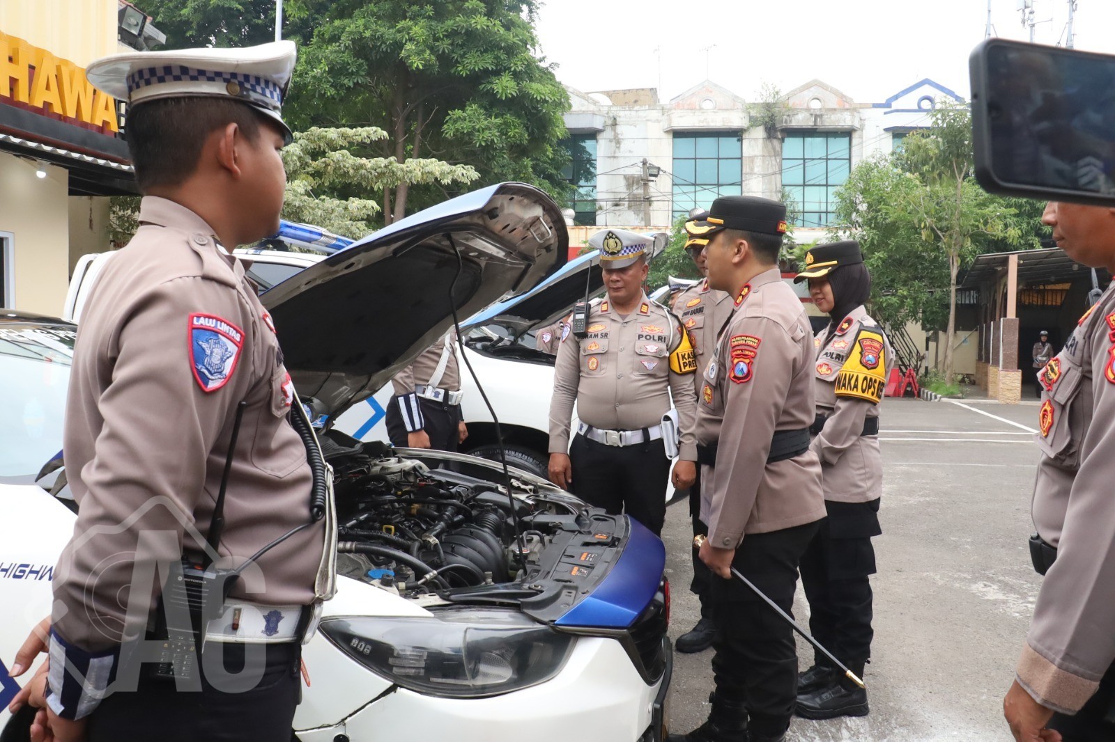 Usai apel, Kapolres Pelabuhan Tanjung Perak berkesempatan melakukan pengecekan langsung terhadap kesiapan personel dan kendaraan dinas yang akan digunakan selama operasi berlangsung. (A6)