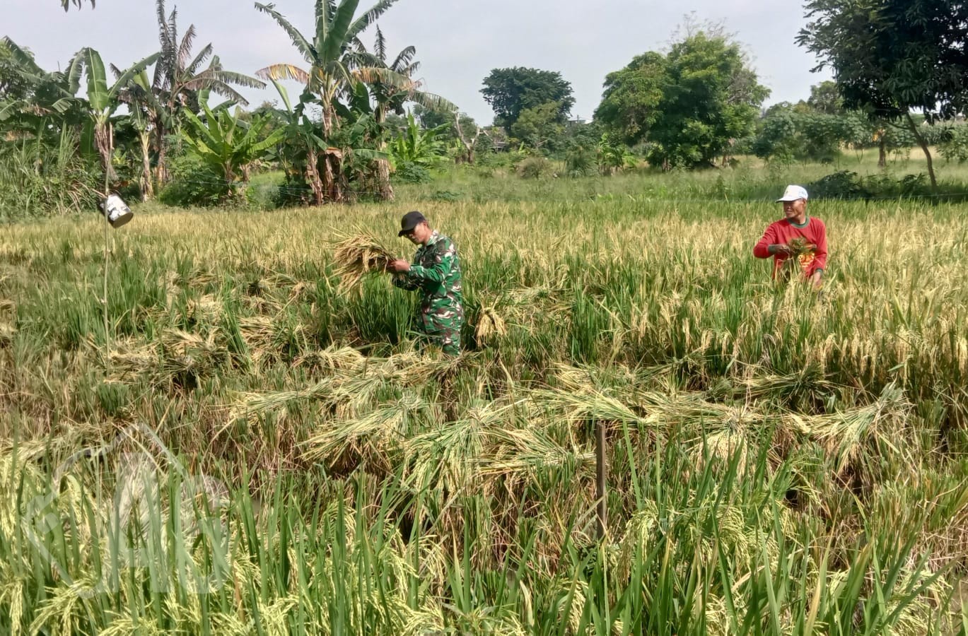 Dengan mengenakan seragam loreng, Serda Fauzi tampak berbaur bersama para petani memanen padi yang telah menguning. Ia membantu memotong batang padi dan mengumpulkannya untuk selanjutnya diproses. Kegiatan tersebut merupakan bagian dari tugas pembinaan teritorial guna memperkuat kemanunggalan TNI dengan rakyat.