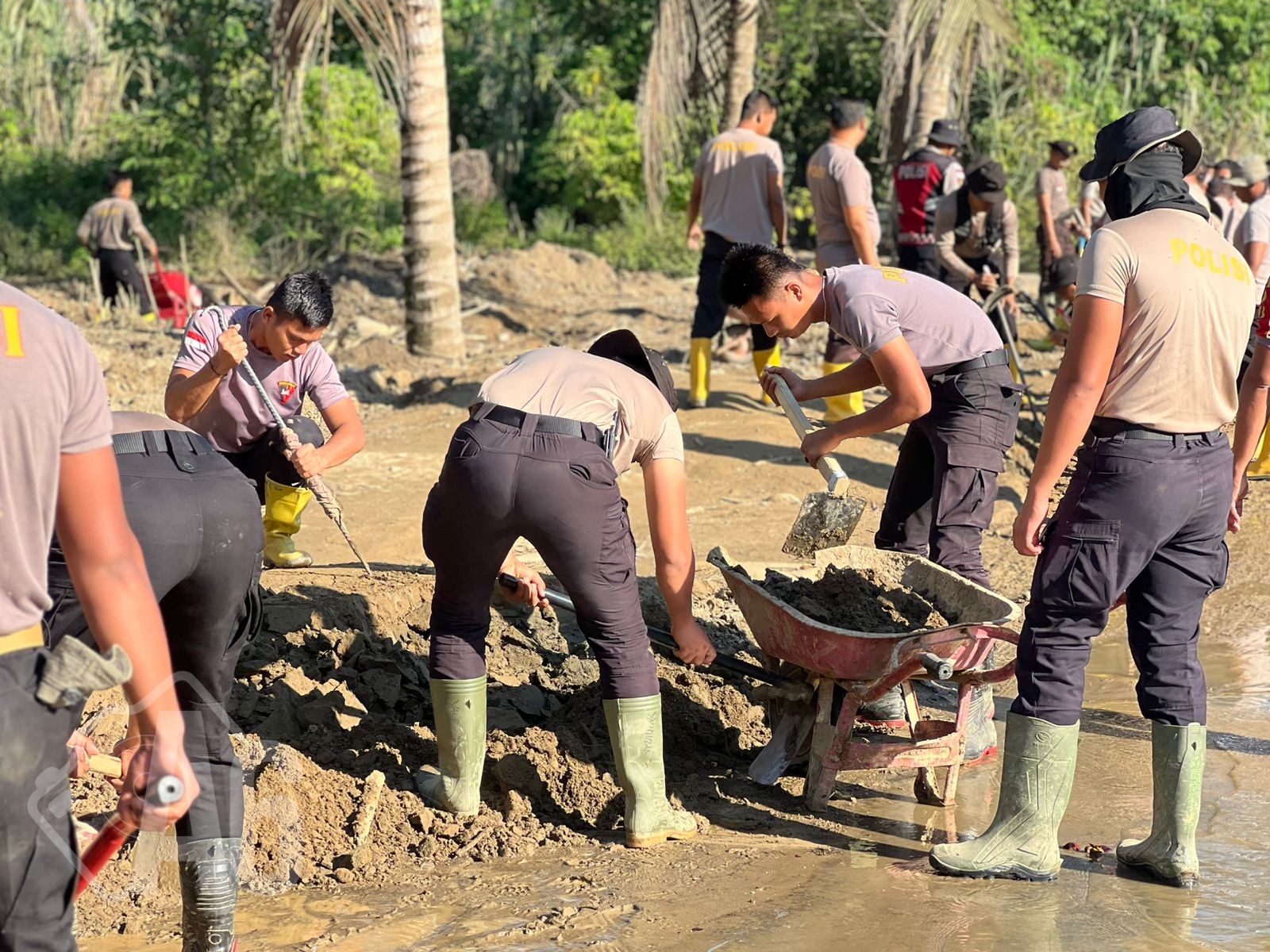 LiputanA6, Sumatera Barat – Pada hari Minggu, 18 Januari 2025, Tim SAR Resimen II Pasukan Pelopor BKO Polda Sumbar melaksanakan kegiatan pembersihan area di sekitar sungai yang terdampak bencana banjir bandang di Desa Kampung Tengah, Kecamatan Palembayan, Kabupaten Agam, Provinsi Sumatera Barat.