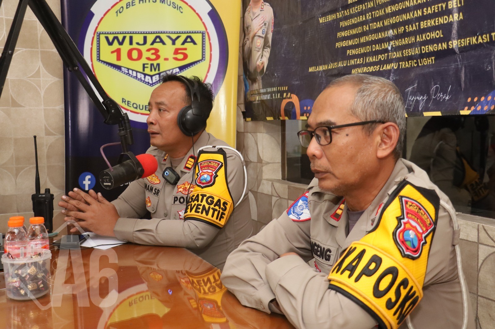 LiputanA6, Surabaya – Satlantas Polres Pelabuhan Tanjung Perak terus menggencarkan sosialisasi tertib berlalu lintas. Kali ini, pendekatan humanis dilakukan melalui saluran udara dengan menyapa pendengar Radio Wijaya FM di Jalan Perak Timur, Kamis (20/11/2025).