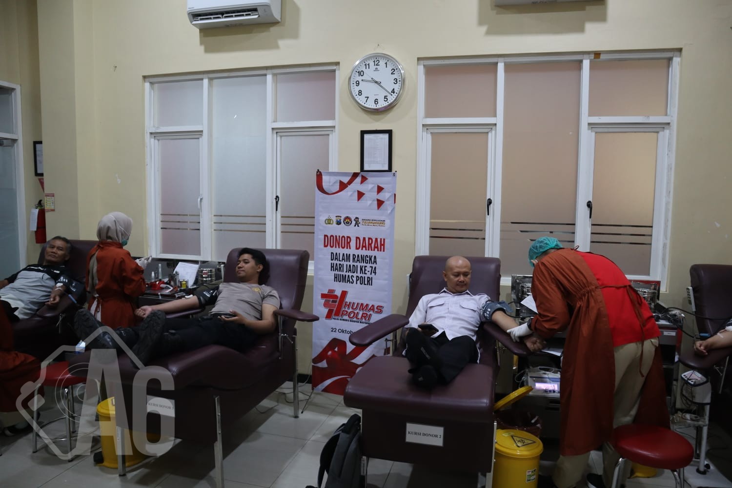 LiputanA6, Tulungagung – Dalam rangka menyambut Hari Jadi ke-74 Humas Polri yang mengusung tema “Humas Kuat, Polri Hebat”, Polres Tulungagung menggelar kegiatan sosial donor darah, Rabu (22/10/25).
