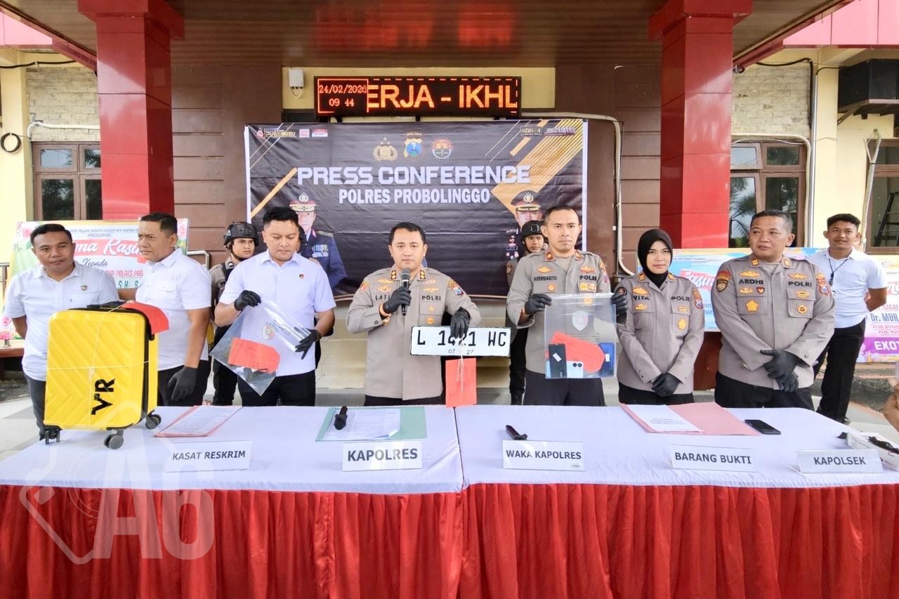 “Modus operandi yang digunakan komplotan pelaku adalah dengan merusak kunci pintu mobil Hiace yang digunakan korban, kemudian mengambil barang-barang yang berada di dalam kendaraan tersebut,” kata AKBP Latif, saat konferensi pers di Lobby Mapolres Probolinggo, Selasa (24/02/26).