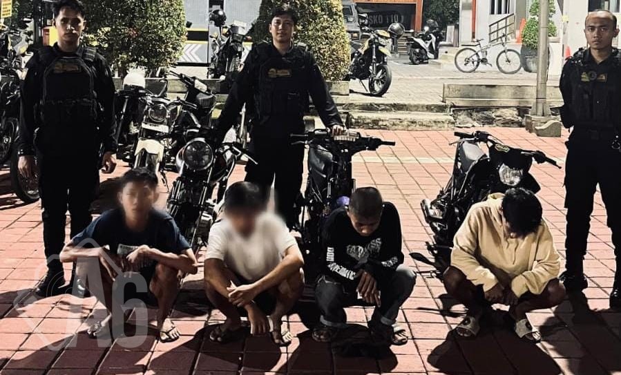 LiputanA6, Gresik – Aksi balap liar kembali marak di wilayah Gresik mendapat perhatian serius dari aparat kepolisian. Empat pemuda, yang terdiri dari seorang pria dewasa dan tiga remaja, diamankan oleh tim Kalamunyeng Satsamapta Polres Gresik.