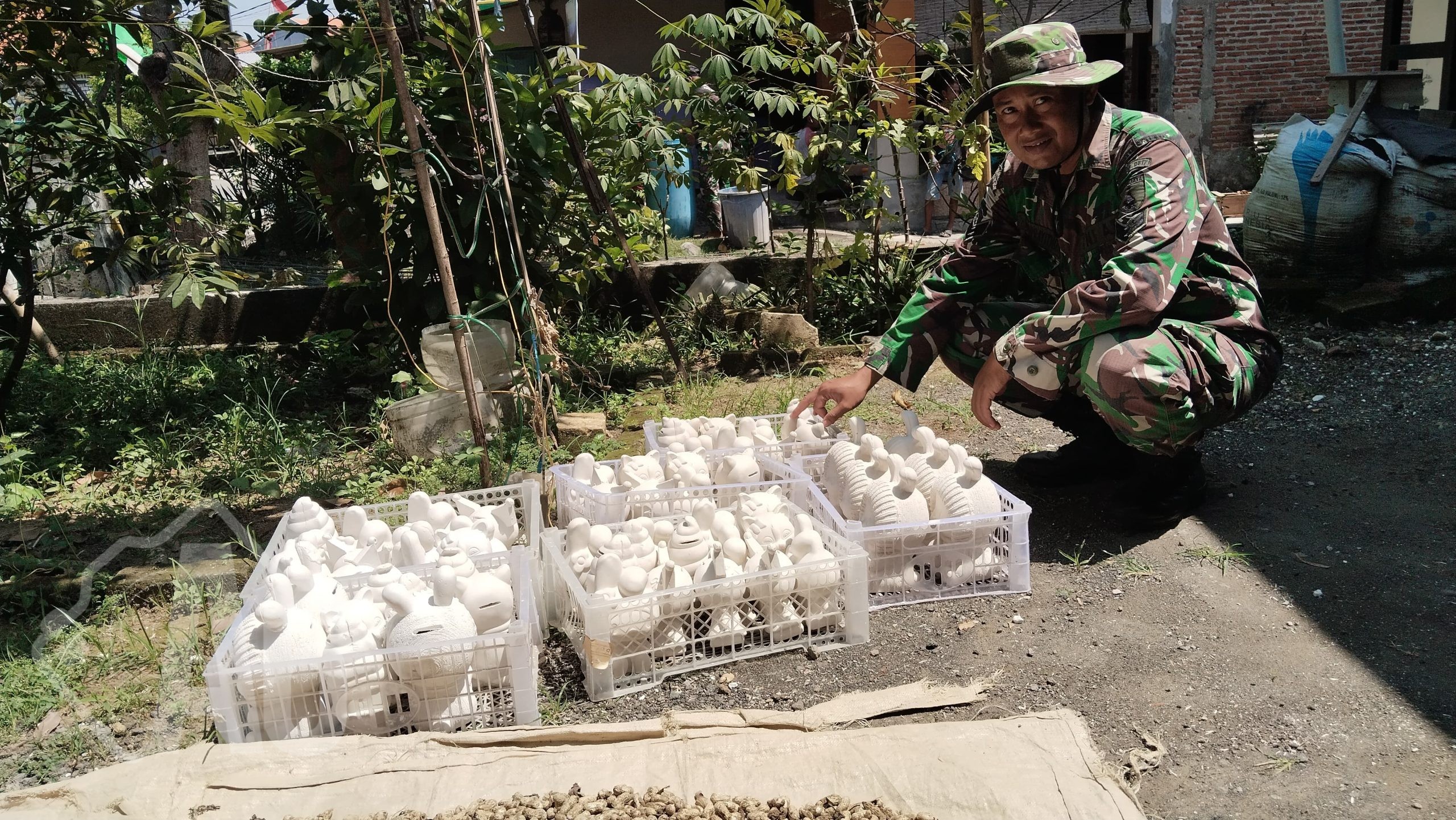 Satgas TMMD Ke-128 Dorong UMKM Desa Slempit, Sertu Bambang Bantu Produksi Celengan