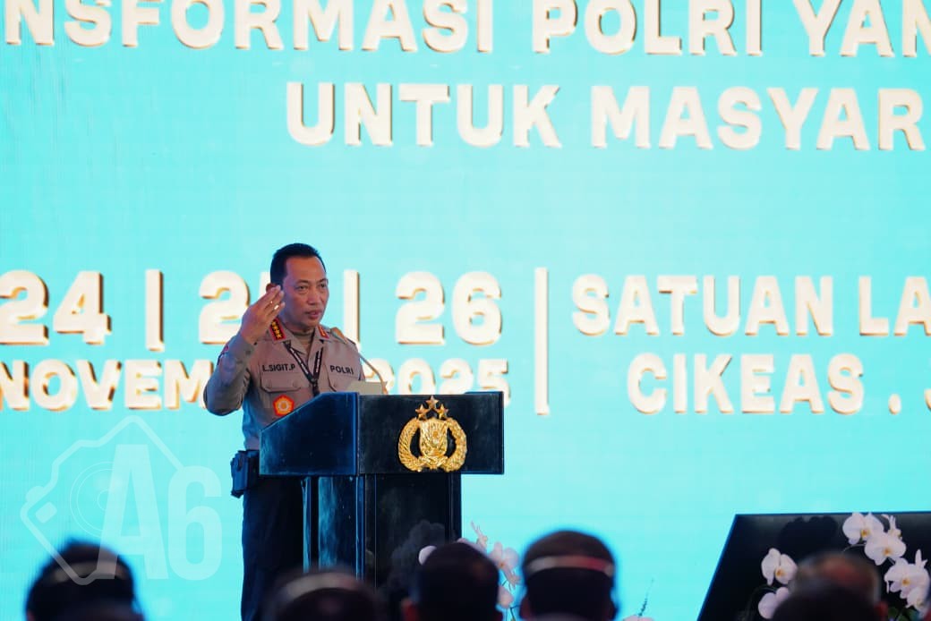 LiputanA6, Jabar – Kapolri Jenderal Listyo Sigit Prabowo memberikan arahan dalam acara Apel Kasatwil di Mako Satuan Latihan Korbrimob Polri, Cikeas, Bogor, Jawa Barat. Dalam pengarahannya, Sigit menyinggung soal semangat Polri dalam meningkatkan pelayanan prima untuk seluruh masyarakat.