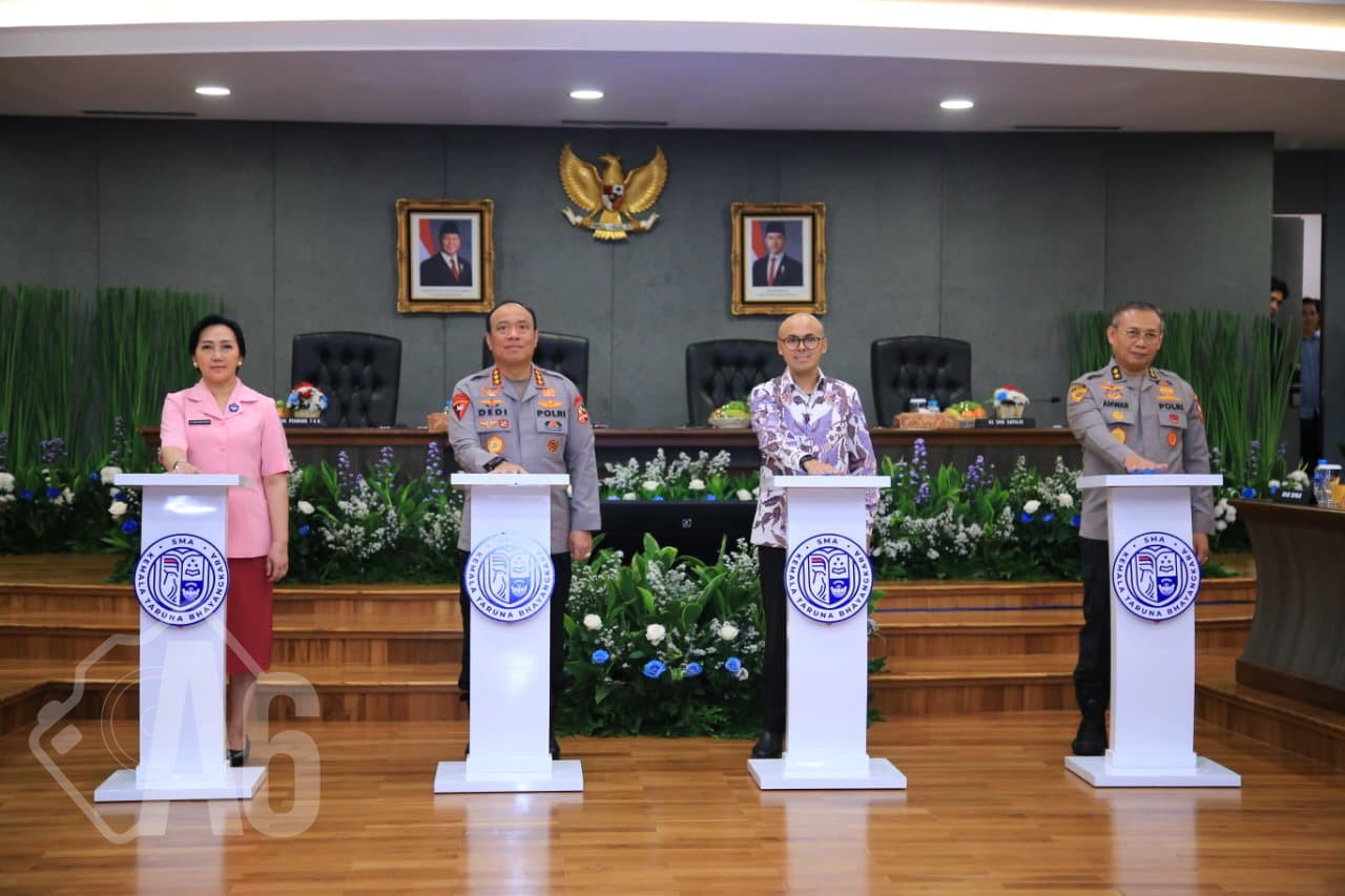 LiputanA6, Jakarta – Polri meluncurkan Sistem Penerimaan Murid Baru (SPMB) SMA Kemala Taruna Bayangkara (KTB) tahun ajaran 2026/2027 di Gedung Utama Mabes Polri, Senin (27/10). Acara ini berlangsung khidmat dengan rangkaian kegiatan mulai dari menyanyikan lagu Indonesia Raya, Mars SMA KTB, pembacaan doa, penayangan video selayang pandang, hingga sambutan sejumlah pejabat. Prosesi peresmian ditandai dengan penekanan tombol oleh Wakapolri Komjen Pol Dedi Prasetyo bersama Ketua Yayasan Pendidikan Kader Bangsa Indonesia (YPKBI) Dirgayuza Setiawan, M.Sc., Wakil Ketua Pembina Yayasan Kemala Bhayangkari (YKB) Ibu Martha Dedi Prasetyo, serta As SDM Kapolri Irjen Pol Anwar.