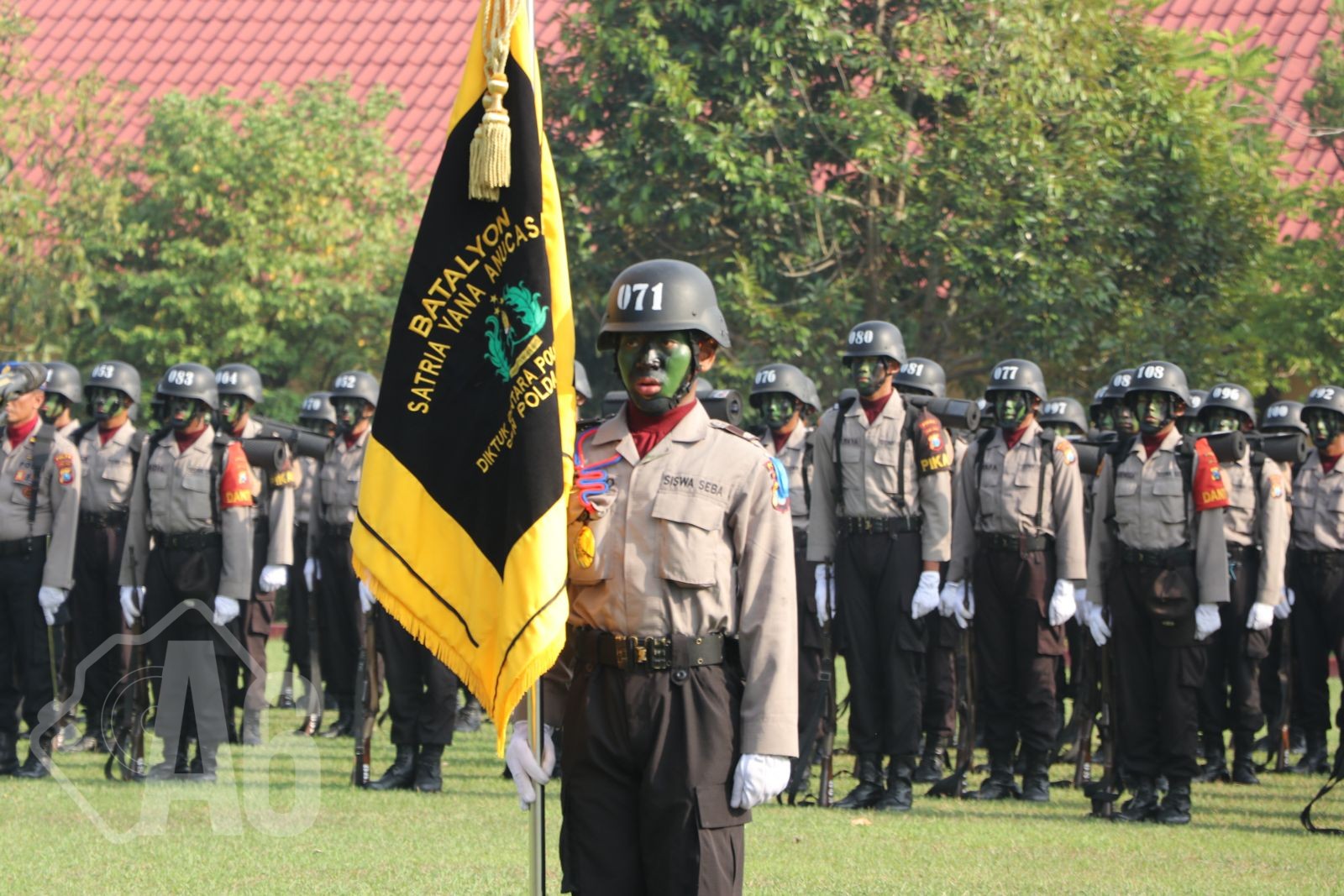 Dalam upacara yang berlangsung khidmat, angkatan Diktukba Polri T.A. 2025 SPN Polda Jatim secara resmi diberi nama “Satria Yana Anucasana”.