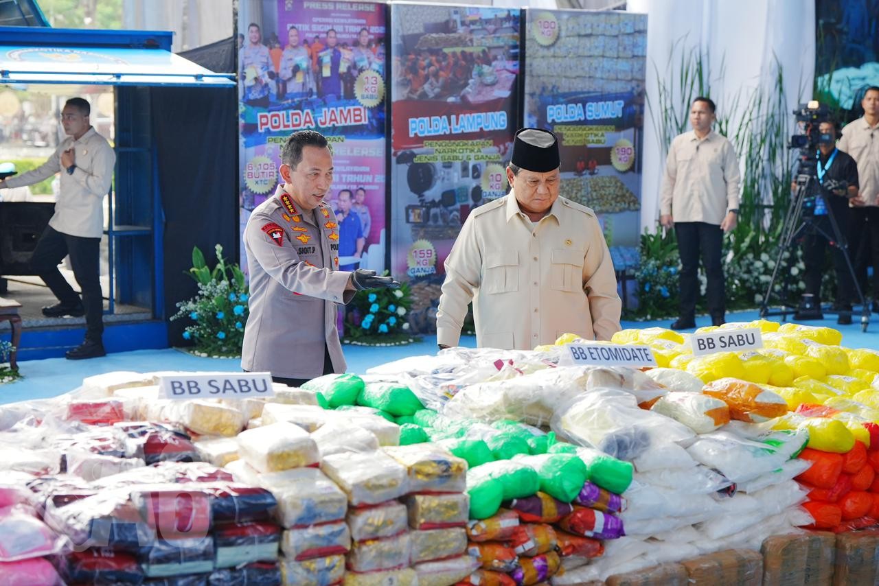 Total barang bukti narkoba yang sudah dimusnahkan seberat 212,7 ton. Sisa barang bukti yang akan dimusnahkan oleh Presiden Prabowo sebanyak 2,1 ton.