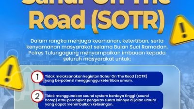 LiputanA6, TULUNGAGUNG – Polres Tulungagung Polda Jawa Timur (Jatim) secara tegas melarang kegiatan sahur on…